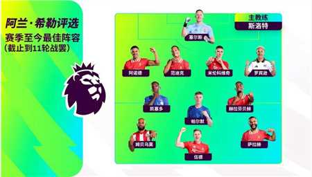 英超前11轮战罢,英超官方发布了阿兰-希勒评选的本赛季至今最佳阵容,萨拉赫领衔利物浦四将入选,帕尔默、凯塞多在列。