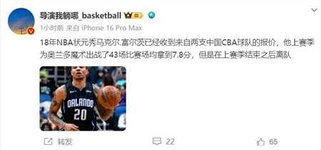 富尔茨,已经收到两支cba球队的报价。
