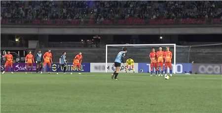 上半场,比赛刚开始两分钟,泰山队防守出现漏洞,川崎前锋球员近距离直接起脚射门,被王大雷伸手挡出,但皮球仅被挡出3米远左右,刚好落到马尔西尼奥身前,并且他附近没有泰山队防守球员,马尔西尼奥直接射门球进,王大雷侧身飞出扑救,但球速太快、角度太偏,没能将球挡出,山东泰山客场0-1落后川崎前锋。