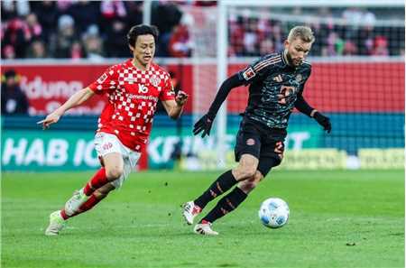 上赛季四大皆空的拜仁慕尼黑,在新帅孔帕尼的率领下,本赛季在德甲联赛表现强势,前十三轮战罢,取得了10胜3平的不败战绩,独自领跑积分榜,但是面对身后紧紧追赶的法兰克福和勒沃库森,南大王仍然不能有丝毫的松懈,本周末德甲第14轮大幕拉开,拜仁奔赴客场挑战美因茨,此役美因茨的韩国老将李在成表现神勇,上演梅开二度的好戏,帮助球队2-1力克拜仁,送给了南大王新赛季德甲首败!