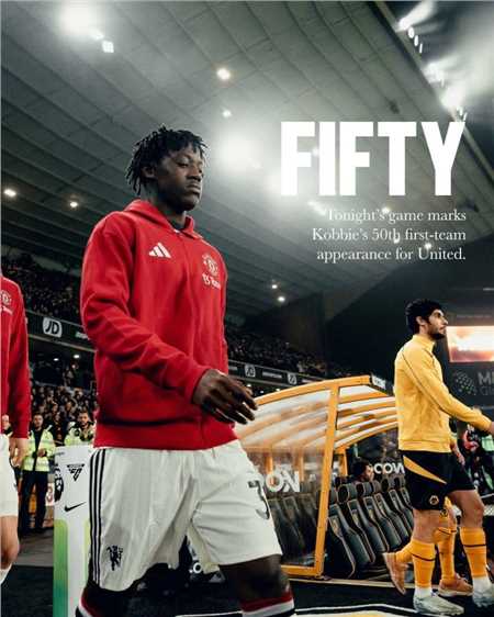 本场比赛是科比-梅努代表曼联一线队出战的第50场比赛,曼联官方社媒发布了一张祝贺他的海报。