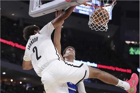 篮网队:约翰逊29分5篮板3助攻、克洛尼20分4篮板2助攻、米尔顿20分2篮板、克拉克斯顿13分7篮板3助攻、约翰逊12分4篮板1助攻、西蒙斯8分4篮板9助攻、t-马丁5分5篮板2助攻、威尔逊4分4篮板5助攻、夏普3篮板。