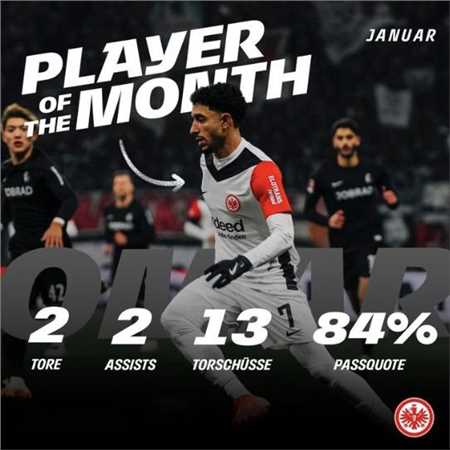 北京时间2月5日,法兰克福俱乐部官方宣布, 马尔穆什 当选俱乐部1月最佳球员。
