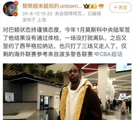 甚至根据国内媒体人透露的消息,巴顿的态度也不是很好。在1月签约莫斯科,然而因为体检没有过导致被放弃。之后又签约了西甲,可惜打了三场比赛就走人了。也就是说,在欧洲联赛巴顿是无法证明自己的实力。当然最终巴顿加盟到了波多黎各,这个联赛的水平并不是很高,这也让其在最近五场比赛得分全部都上双了。也就是说,他打这种联赛还是可以的。