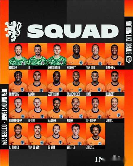 10月份欧国联,荷兰队将先后对阵匈牙利和德国。