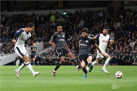 热刺开场不久就遭遇少打一人的困境,虽然占据了控球率的优势,但卡拉巴赫创造了更多的机会,只不过他们将自己的机会一一挥霍。